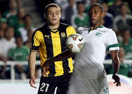 Deportivo Cali salió con una actitud conservadora con el objetivo de defender el resultado que obtuvo en el partido de ida y en el que consiguió arrancar un empate 2-2 que, a priori, le favorecía. Los colombianos cedieron el balón y los visitantes, con un planteamiento incisivo se lanzaron al ataque desde el primer minuto. Merced a esa actitud ofensiva, el conjunto aurinegro consiguió llegar al área rival desde los primeros instantes del partido y en una acción en profundidad, Zalayeta recibió un pase entre líneas tras ganar la espalda a los defensores colombianos y definió cruzado y por bajo para hacer el 0-1. La dinámica positiva de Peñarol, que trianguló durante todo el partido buscando las espaldas de la defensa local, le permitió tener el control del partido y contar con las mejores oportunidades que, sin embargo, no consiguió materializar en goles. Los caleños disfrutaron de su mejor oportunidad cuando Germán Mera botó una falta desde la frontal del área que el Pablo Migliore desvió lo justo para que el balón se estrellara en al arco. La segunda parte se inició con Peñarol muy bien asentado en el campo, dominando los espacios y tocando el balón con un dominio total del juego frente a un Cali sin demasiadas ideas que intentaba acercarse al arco rival por las bandas impulsados por Candelo que fue el mejor de su equipo. El partido se enzarzó en un intercambio de golpes en el que Peñarol se defendió con orden y Cali buscó cambiar su trayectoria al introducir a sustitutos en busca de un revulsivo, que no apareció.