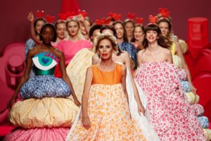 La diseñadora Agatha Ruiz de la Prada al término del desfile de su colección
