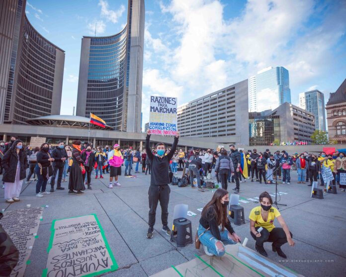 Sobre las actividades que realizaron en las últimas semanas los colombianos que residen en Canadá, Darío Esguerra señaló que en las protestas que tuvieron lugar en Toronto participaron miles de jóvenes colombianos que no entienden cómo el gobierno del primer ministro Trudeau no se ha pronunciado al respecto.