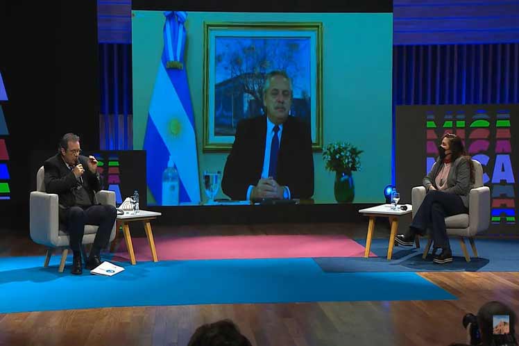 El presidente Alberto Fernández encabezó la puesta en marcha de la nueva edición del Mercado de Industrias Culturales Argentinas (MICA), en un acto en el que apostó por potenciar aun más esta esfera.