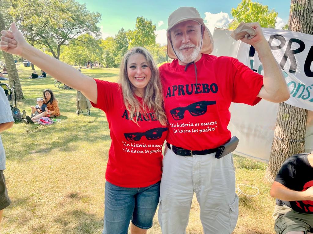 Añadió que también han realizado algunas actividades financieras, como una “completada” (venta de hot dogs) “y con ese dinero enviamos una donación a artistas que viven en Chile y están por el Apruebo. También hicimos una rifa que va al movimiento por el Apruebo en la ciudad de Puente Alto, la comuna más poblada del país. Nos encontramos ahora buscando apoderados para el proceso de votación”.