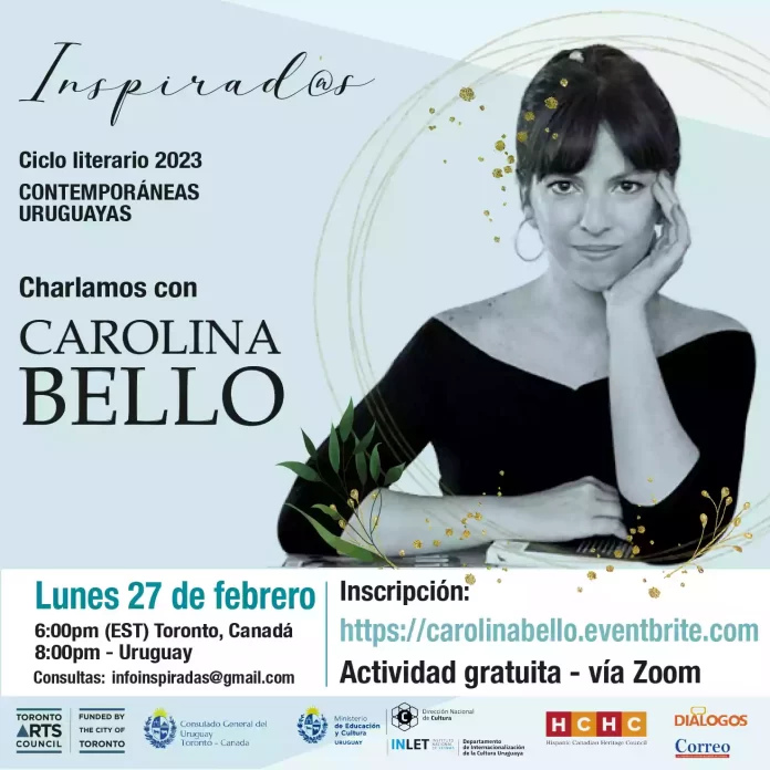 Como parte del ciclo literario 2023, Contemporáneas Uruguayas, la escritora Carolina Bello tendrá un encuentro, vía zoom, el próximo 27 de febrero a las 6:00 pm (tiempo Toronto, Canadá), y 8:00 pm (hora Uruguay).