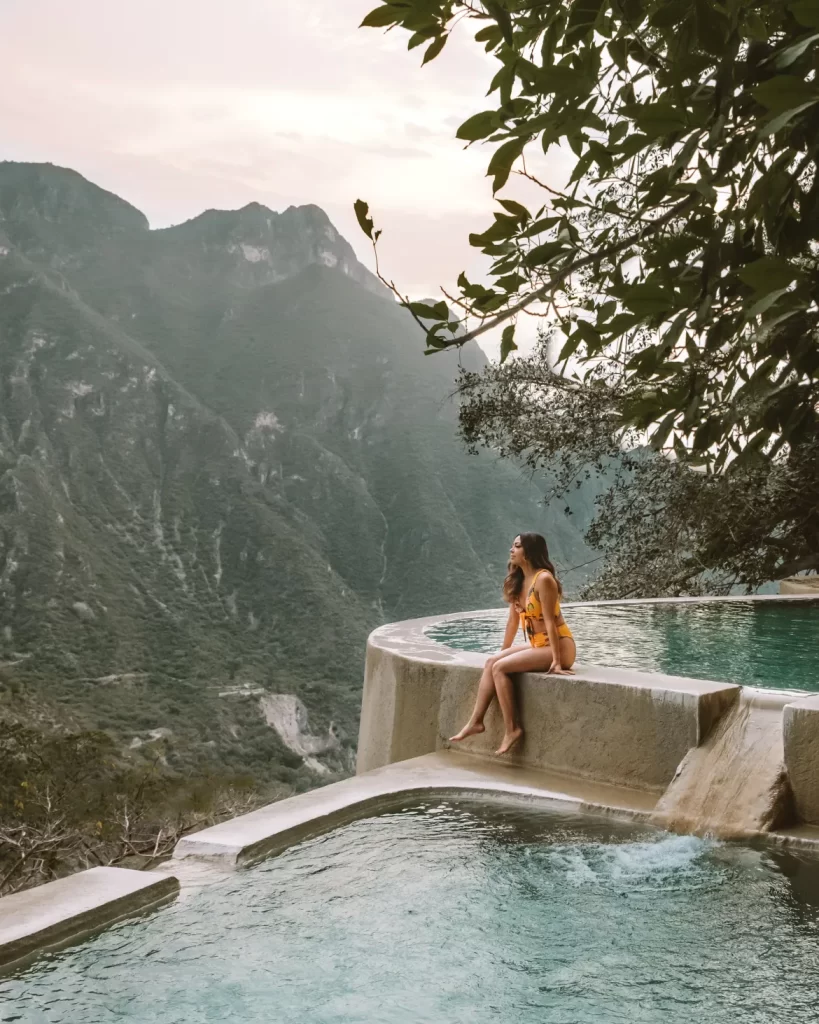 Las pozas de Tolantongo son unas 40 terrazas situadas en el inclinado acantilado donde se acumula el agua proveniente del río que fluye por las grutas, cada una independiente del resto, lo que permite disfrutar un relajante baño de aguas termales en las alturas.