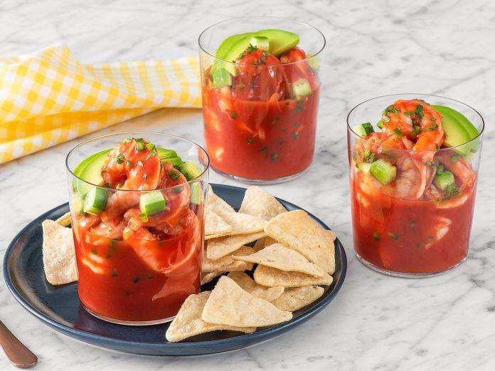 Una deliciosa y refrescante combinación de ingredientes como jitomate, cebolla, chile serrano y cilantro; sazonados con Ketchup, jugo de tomate y aceite de oliva.
