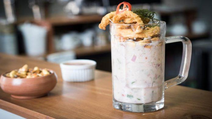 La leche de tigre es el jugo condimentado resultante del ceviche peruano. Este potaje se volvió protagonista desde la década de los 90, durante esta época los vendedores en los mercados crearon la versión económica del ceviche.