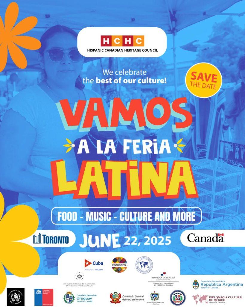 La cita es en “La Feria Latina 2025”, una actividad cultural anual de promoción de la identidad y las raíces latinoamericanas, organizada por el Consejo Canadiense para la Herencia Hispana (HCHC) en las instalaciones de Wychwood Barns and Park, ubicado en la zona de Christie y St. Clair, en Toronto.