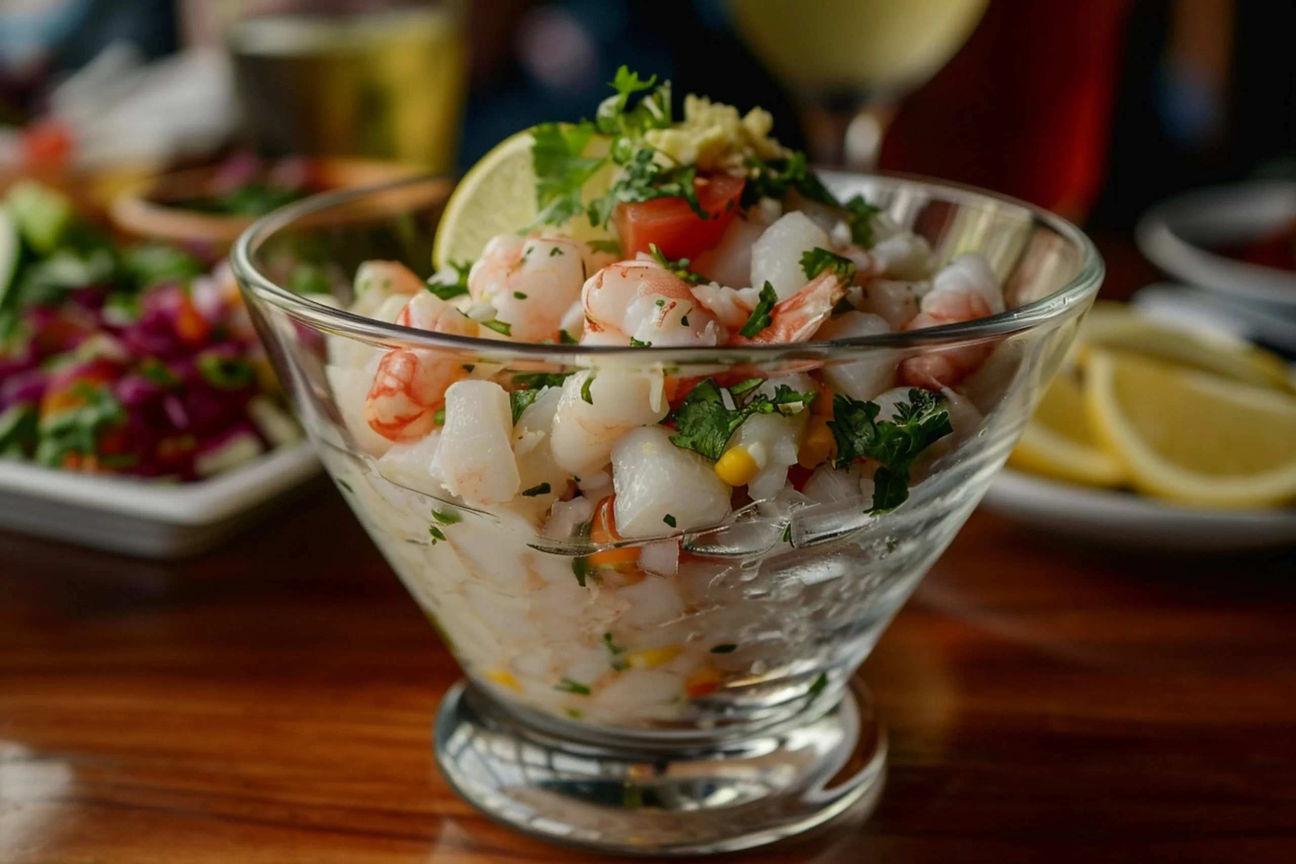 Corta los camarones en trozos pequeños. Colócalos en un recipiente de vidrio y cúbrelos completamente con el jugo de limón. Tapa y refrigera durante 30-40 minutos o hasta que los camarones tomen un color rosado y opaco (el ácido los “cuece”).