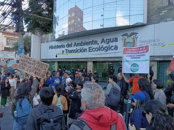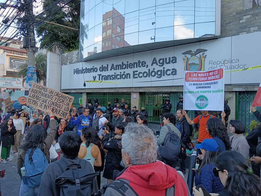 Ciudadanos de Ecuador realizaron un plantón en los exteriores del Ministerio de Ambiente, Agua y Transición Ecológica, en rechazo a la fusión de esa cartera con la de Energía y Minas.