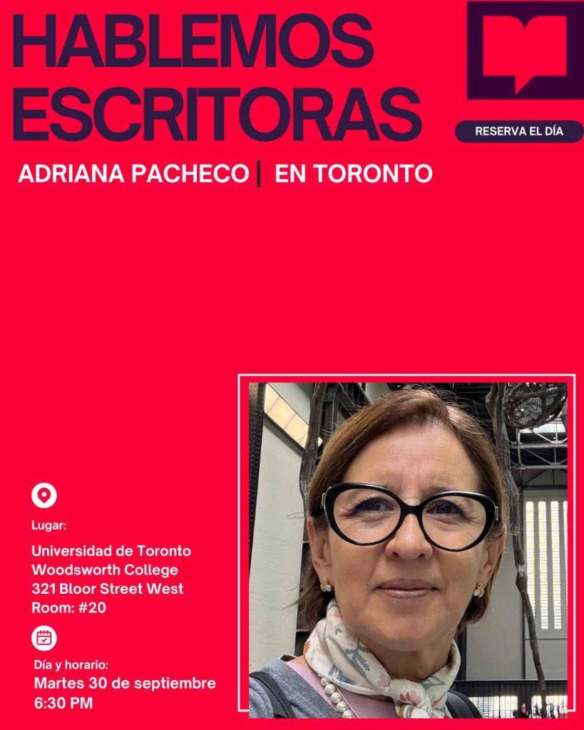El próximo martes 30 de septiembre, Toronto recibirá una visita muy especial: el proyecto Hablemos, escritoras, creado y conducido por la investigadora y promotora cultural Adriana Pacheco, se presentará en la Universidad de Toronto – Woodsworth College (321 Bloor Street West, Room #20) a las 6:30 p.m.