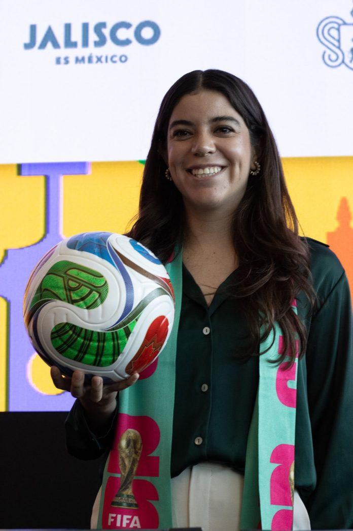 Orozco, quien anunció su retiro tras la cita estival de París 2024, lució la bufanda de embajadora y el balón que pondrá al mundo a jugar en la sede de Guadalajara.
