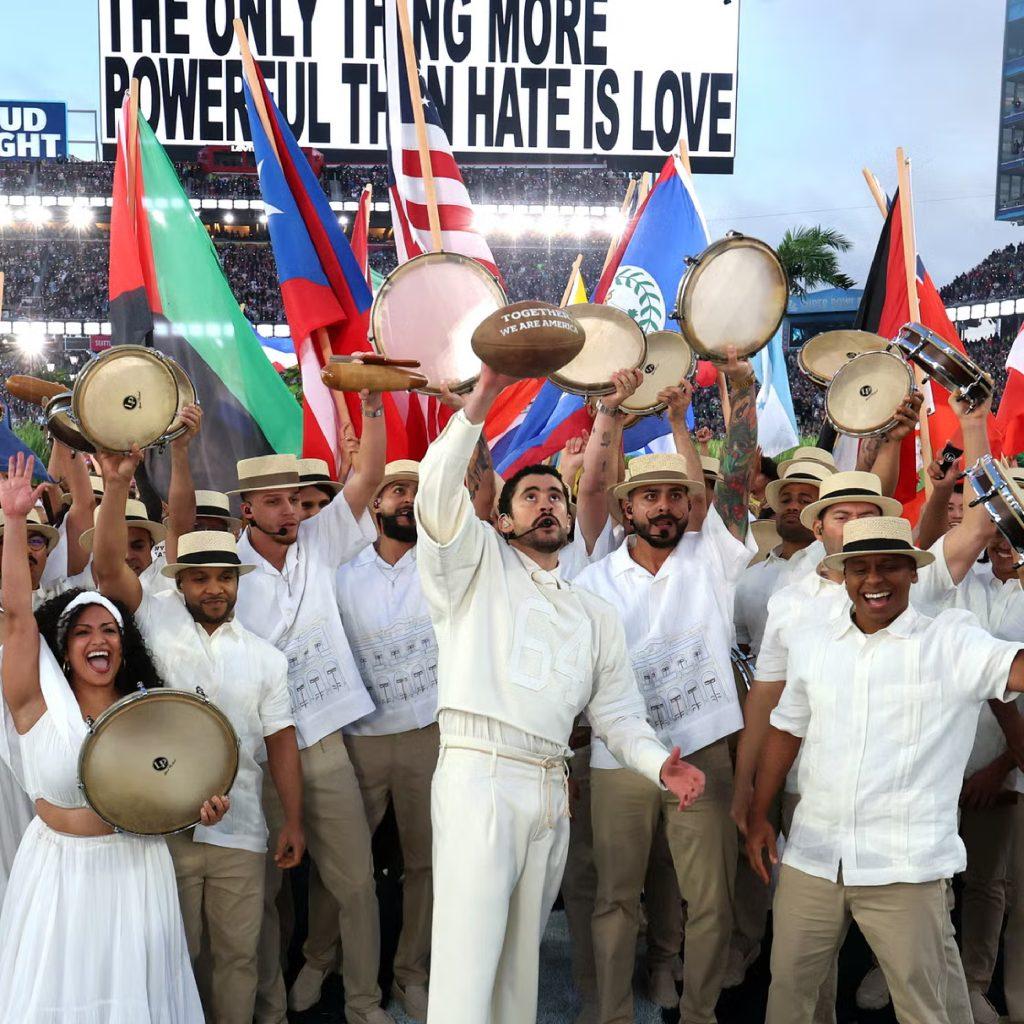 Dicha presentación incluyó referencias simbólicas a la identidad latinoamericana y caribeña, puso a pensar sobre la historia de Puerto Rico y de países del continente, y mostró un balón con la frase “Together, we are America” (Juntos, somos América).