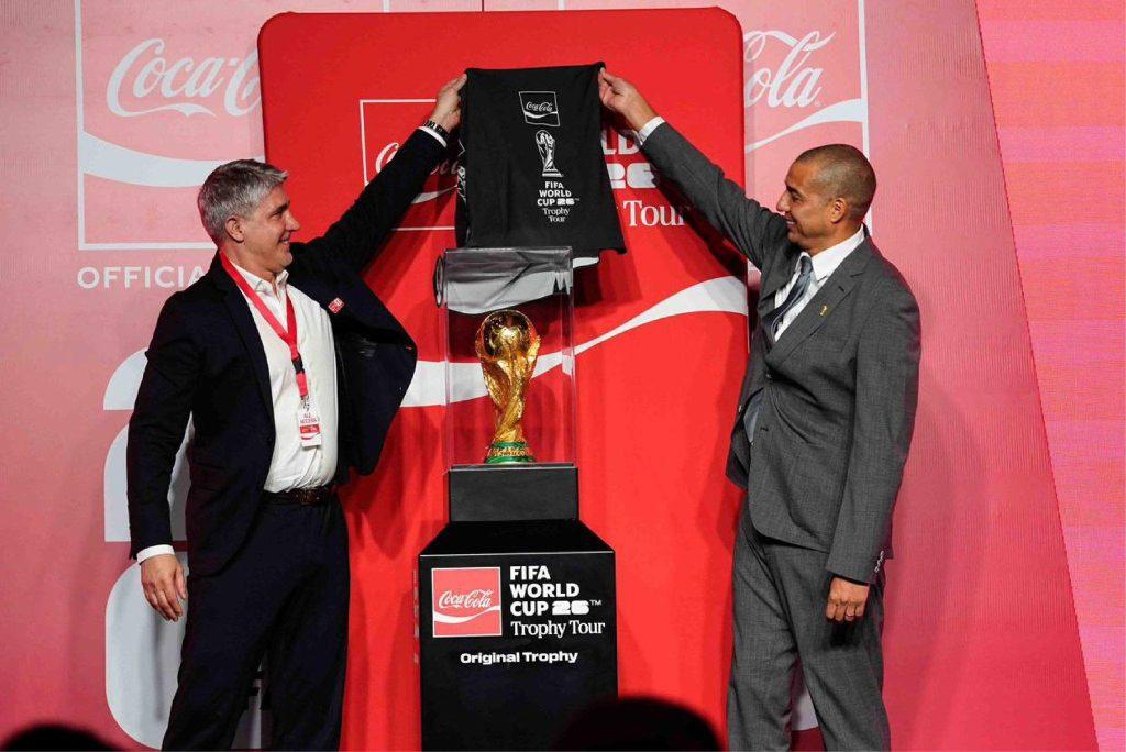 El exjugador francés David Trezeguet presentó la Copa a los ecuatorianos que se congregaron en el Quórum del Paseo San Francisco, en esta capital, para ver el premio que se entregará a las ganadores del Mundial, que se celebrará este año en Estados Unidos, México y Canadá.