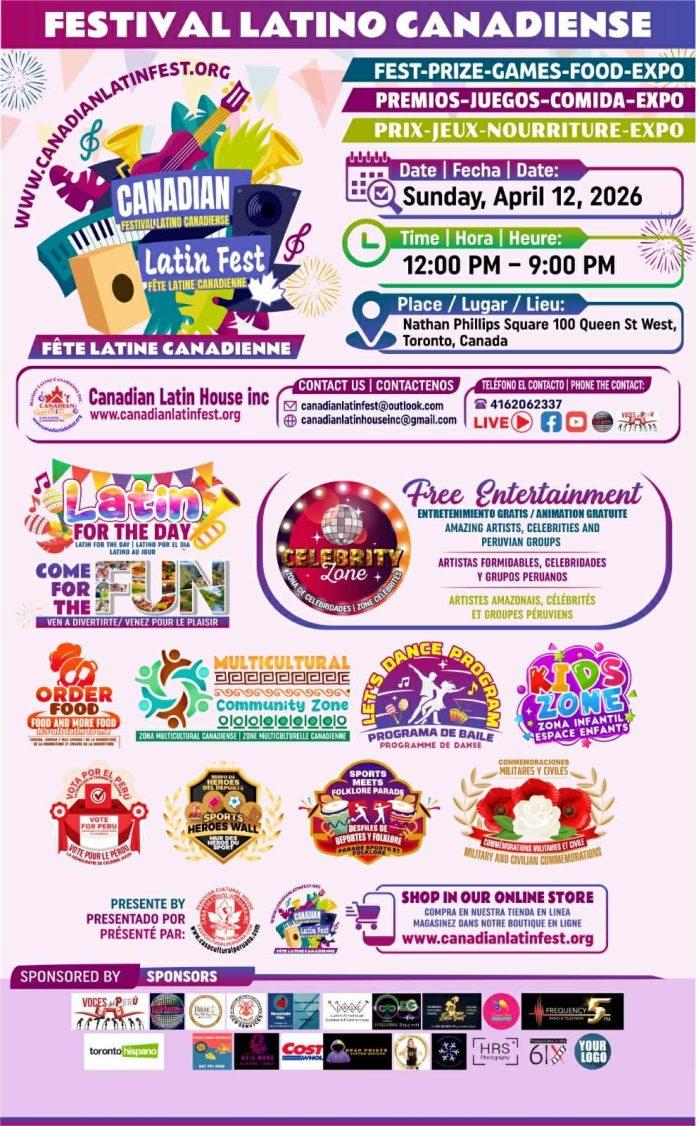 El Festival ofrecerá una programación diversa que captura la esencia de la América Latina canadiense. Los asistentes podrán disfrutar de una jornada diseñada para celebrar la herencia hispana y fortalecer los lazos comunitarios en el corazón de la ciudad desde las 12:00 p.m. hasta las 9:00 p.m.
