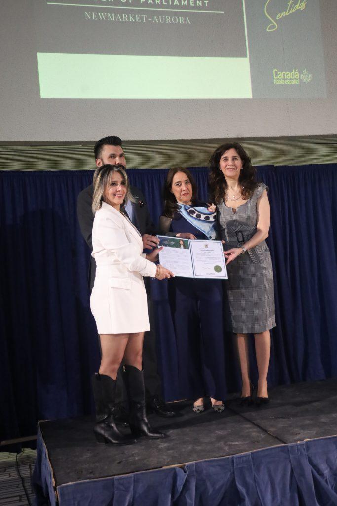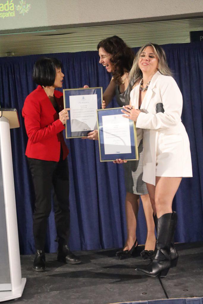 Uno de los momentos más significativos de la noche fue la entrega oficial de la Proclamación 2026 a las organizadoras Ericka Aguilera y Carolina Testa, quienes han liderado el crecimiento de esta iniciativa a nivel nacional desde el proyecto Canadá Habla Español (CANHE).